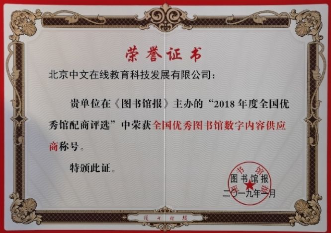 2019全國館社高層論壇:中文在線榮膺“全國優秀圖書館數字內容供應商”